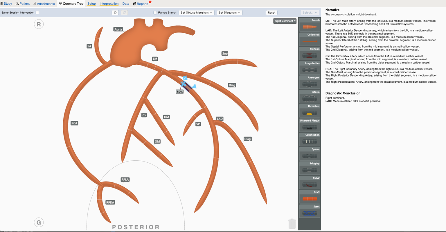 With tools for all EP study types and procedures, data flows from hospital information systems, nursing note, recording systems and via inventory to assist the staff in creating a comprehensive final report. The staff, by choosing a few values on a form, can create grammatically correct logs and conclusions with minimal effort. EncaptureMD EP also includes many smart graphics. Users can use these drawing tools to describe ablation patterns, highlight VT sources and much more.