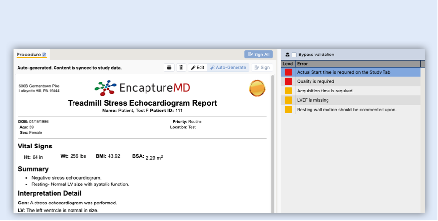 EncaptureMD for Cardiac Catheterization provides an intuitive and comprehensive set of tools that allows every member of the team to collaboratively and accurately schedule, document cases, track inventory and bill for the procedure. All coronary, cardiac and peripheral vascular procedures including TAVR, ASD, PFO closure devices, Mitra clips and mechanical assist reports can be created. Optional nursing documentation, superior to other systems, is available. Data flows effortlessly from EMR and lab systems.